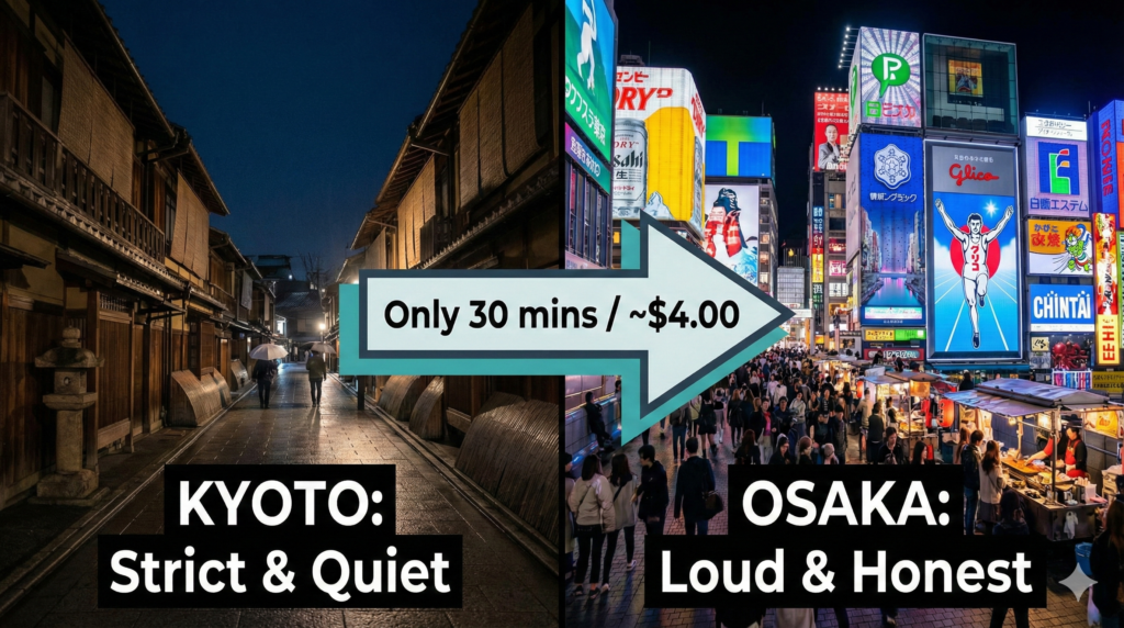 • Verdict: Live in Osaka for the fun and food; visit Kyoto on weekends for the culture.